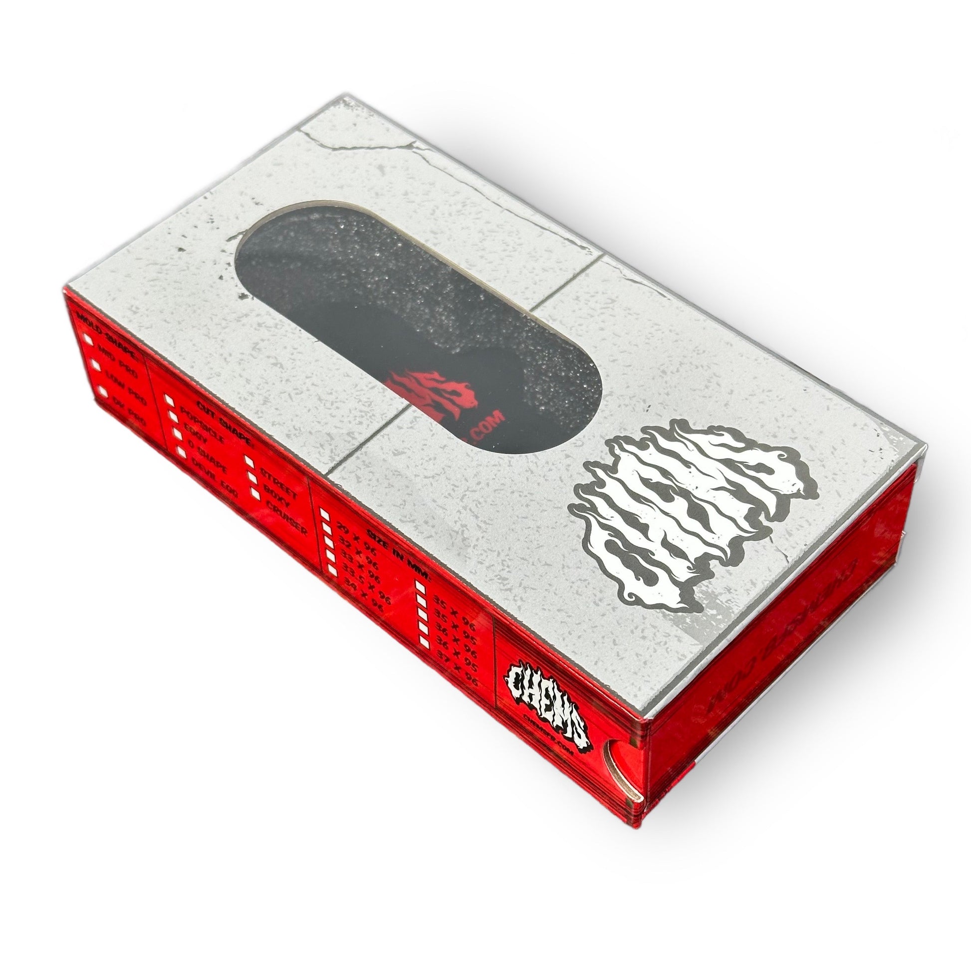 Every Chems Fingerboard Deck is custom made to order! Please see the “Shipping” page for details on wait times etc! High quality 5 ply maple fingerboard decks with real wear skate graphics! (PLY COLOR COMBOS MAY VARY)
